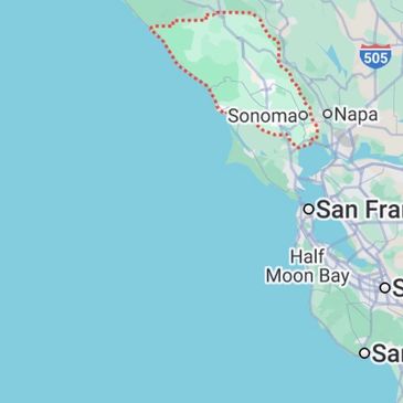 We Service Sonoma, Napa, Marin, San Francisco, San Mateo, Santa Clara, and Solano Counties. Including but not limmited to: Petaluma, Cotati, Rhonet Park, Santa Rosa, Windsor, Healdsburg, Bodega Bay, Kenwood, Yountville, Napa, Calistoga, Vallejo, Suisun, Vacaville, Fairfield, Novato, San Rafael, Stinson Beach, Point Reyes, Sausalito, Mill Valley, Fairfax, San Anselmo, Greenbrae, Tiburon, Marin City, San Francisco, San Mateo, Palo alto, Woodside, Cupertino and beyond.